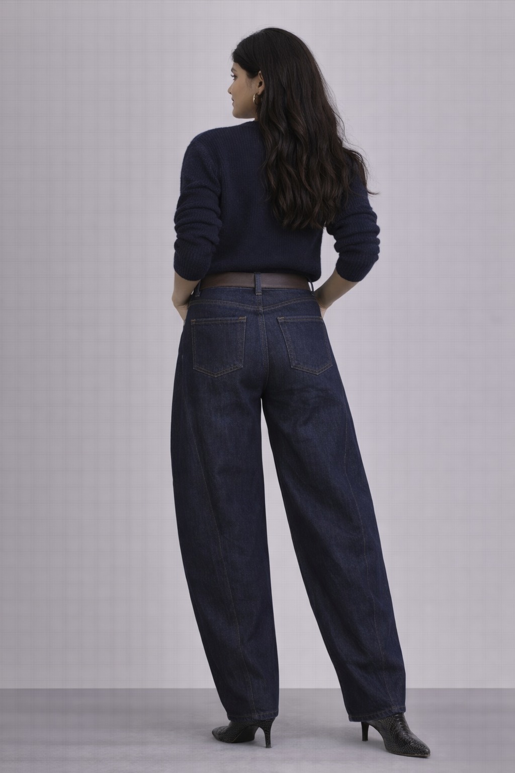* Modern barrel-leg silhouette