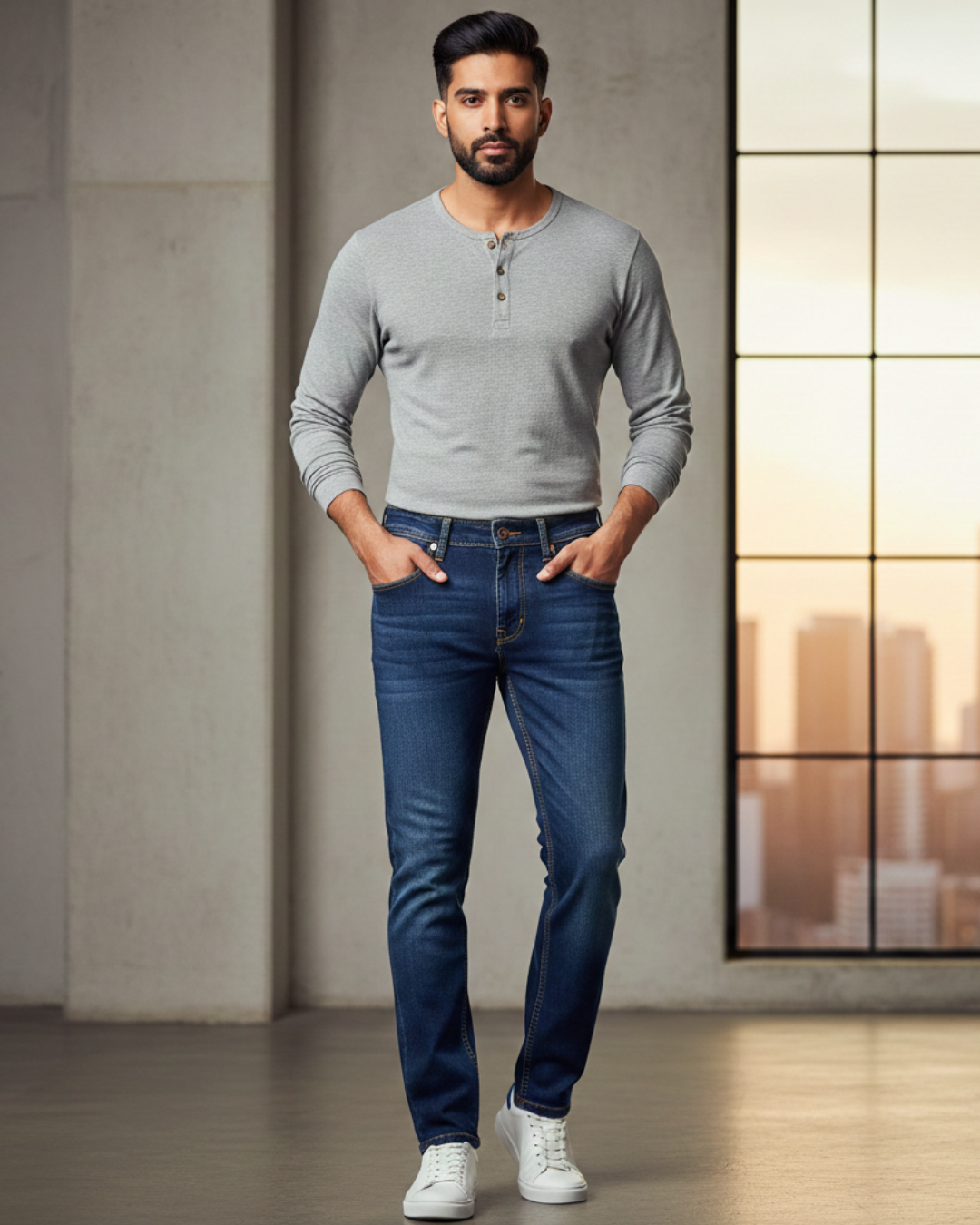 Mid-Wash Denim is finished with subtle whiskering for an authentic, broken-in feel. Easy to dress up or down, this is the reliable backbone of your casual collection.